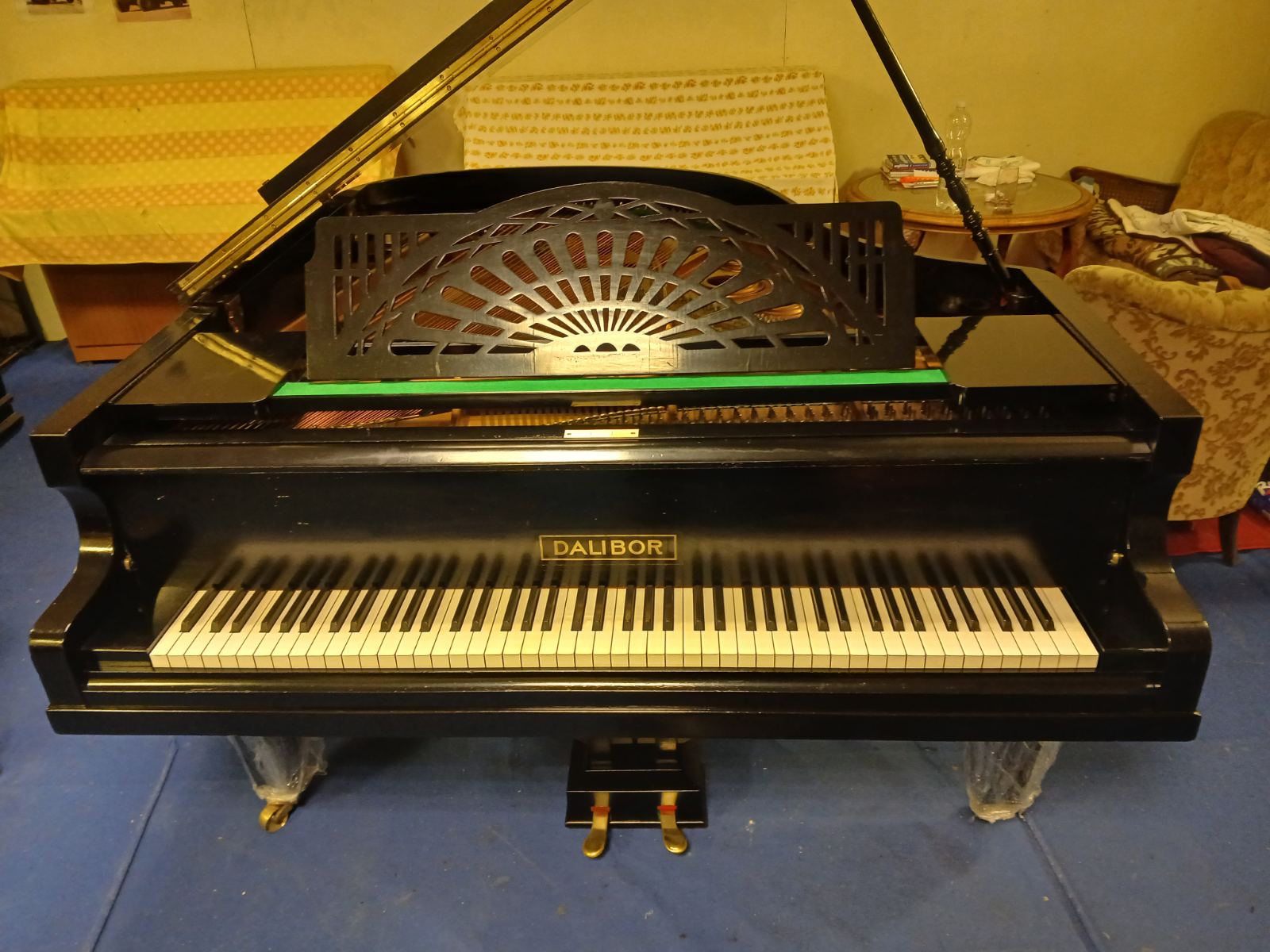 Pianoforte a coda Dalibor (scuola Petrof) di lunghezza 175cm. Estensione di 88 tasti. Anno di costruzione 1920 circa. Arpa in ghisa monofusa, corde incrociate, doppio scappamento. Tastiera originale avorio. Accordato a 440hz.